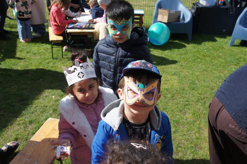 Auch in den Gemeinschaftsunterkünften sind wir aktiv: mit Natur- und Kreativangeboten wie Töpfern, Gärtnern, unseren Wilden Jahreszeitenwerkstätten und kleinen Festen. Gemeinsam gehen wir in den Wald, ans und aufs Wasser, basteln, werkeln und feiern – draußen, kreativ und miteinander.