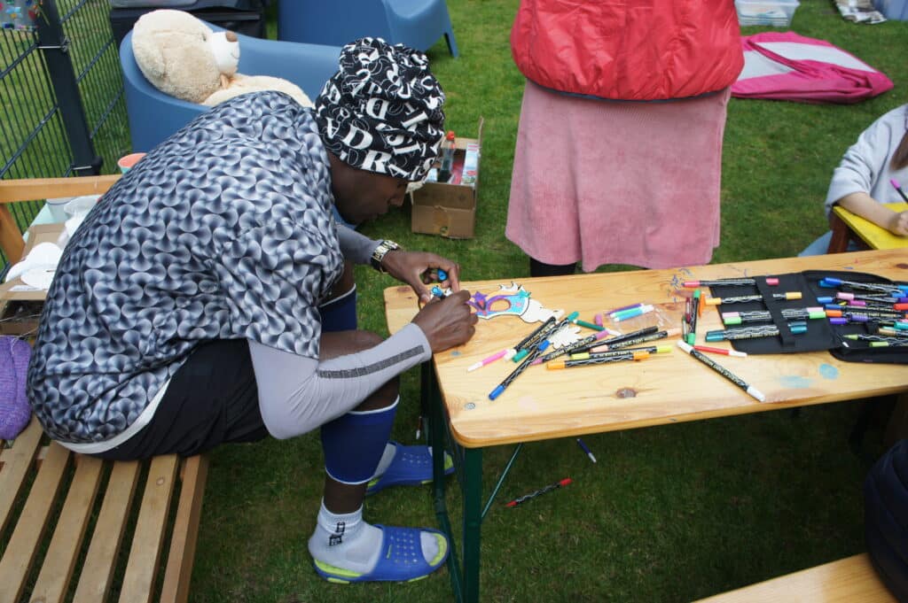 Wir arbeiten eng mit dem Familienzentrum am Bisamkiez und mit verschiedenen Gemeinschaftsunterkünften des IB zusammen. In diesen Kooperationen ist es uns wichtig, echte Begegnungen zu schaffen und Brücken zwischen Menschen mit Flucht- und Migrationsgeschichte und anderen Potsdamer*innen zu bauen.